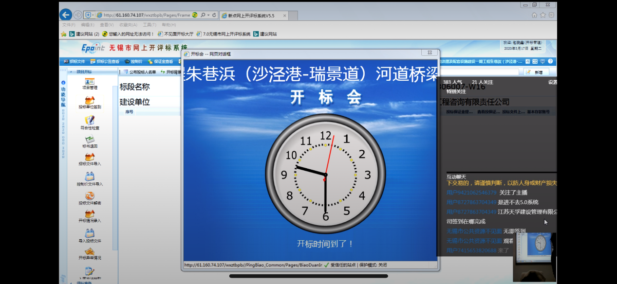 3月17日上午9:30,太湖新城發(fā)展集團下屬子公司新城置業(yè)公司代建項目——太湖濱湖地區(qū)水環(huán)境治理及配套設(shè)施建設(shè)一期工程朱巷浜(沙涇港-瑞景道)河道橋梁工程在無錫市公共資源交易中心開標。與以往不同,此次開標采用了網(wǎng)上直播的新模式:投標人無需到現(xiàn)場,只需打開今日頭條,就可以實時觀看整個開標過程。